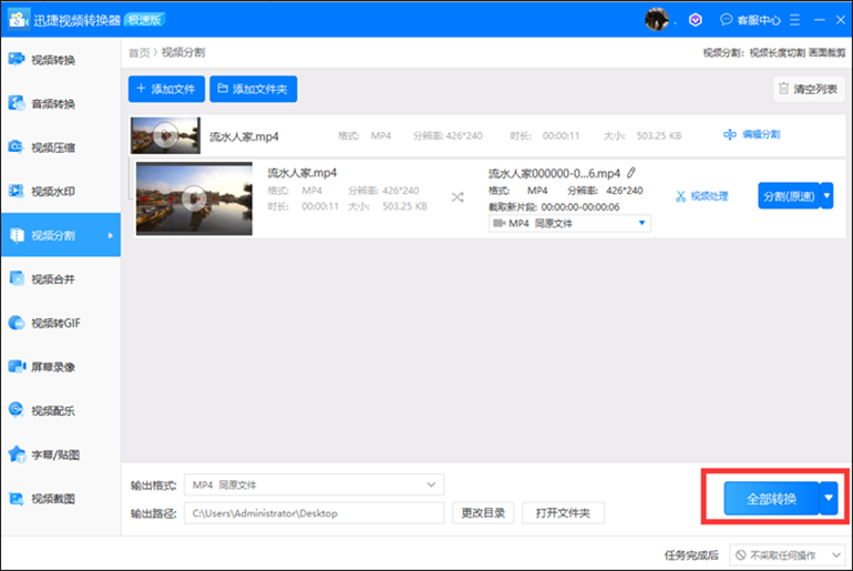 第四步 上一步已经对视频裁剪完成,只需点击【全部裁剪】即可。