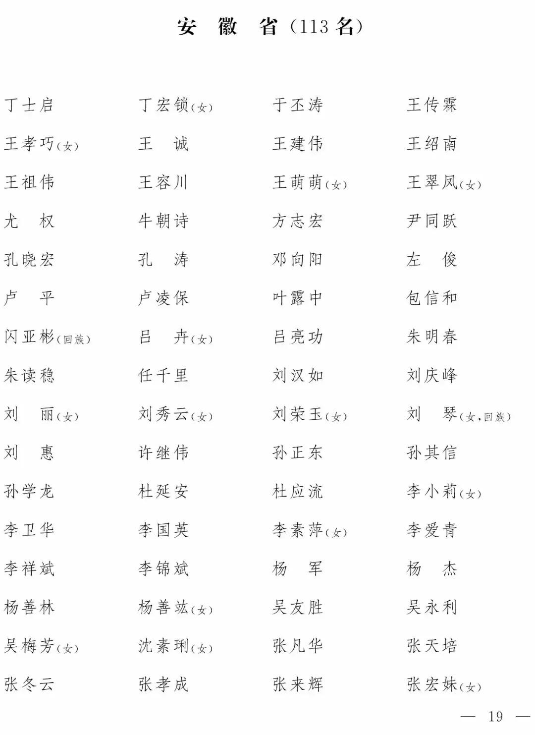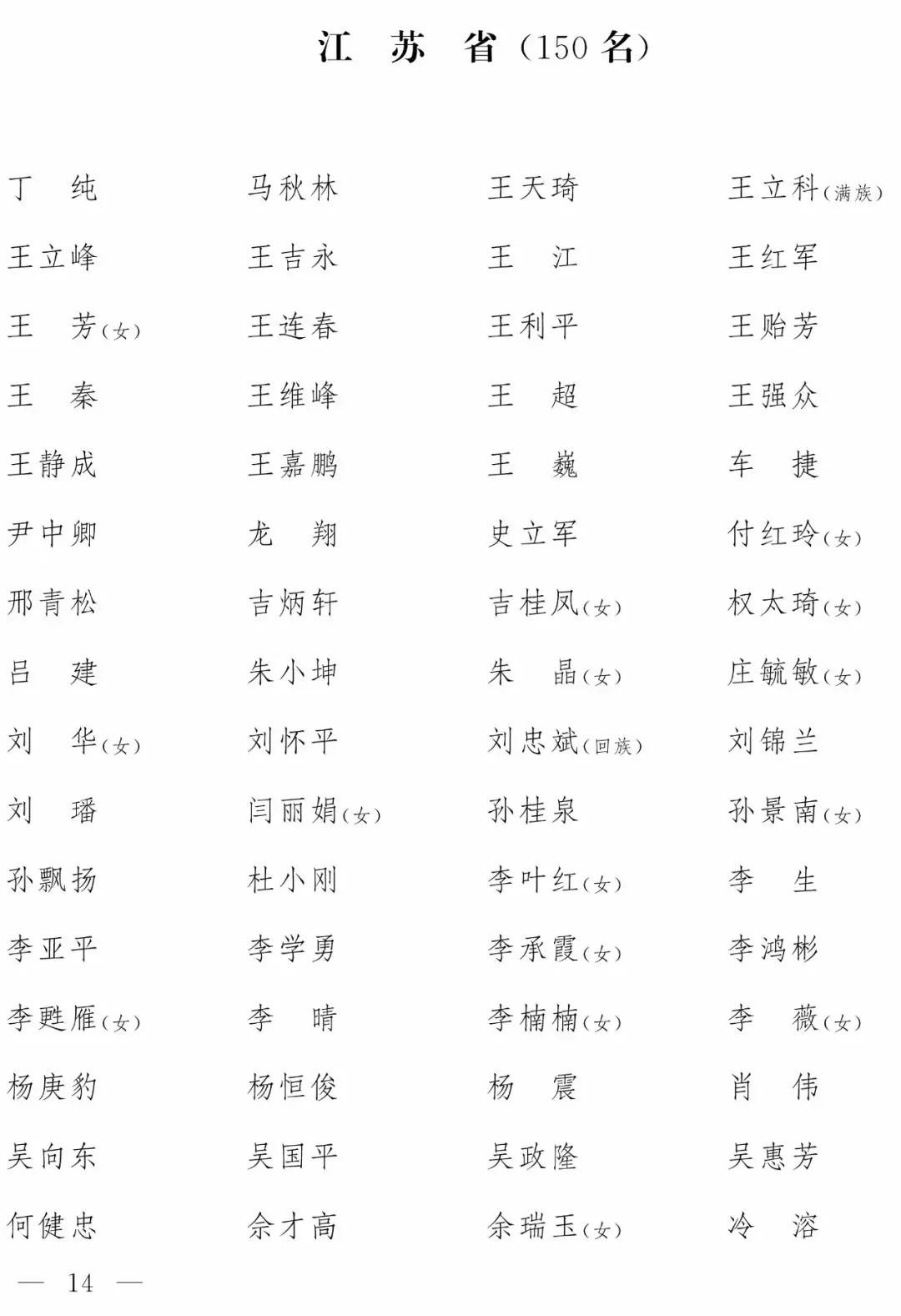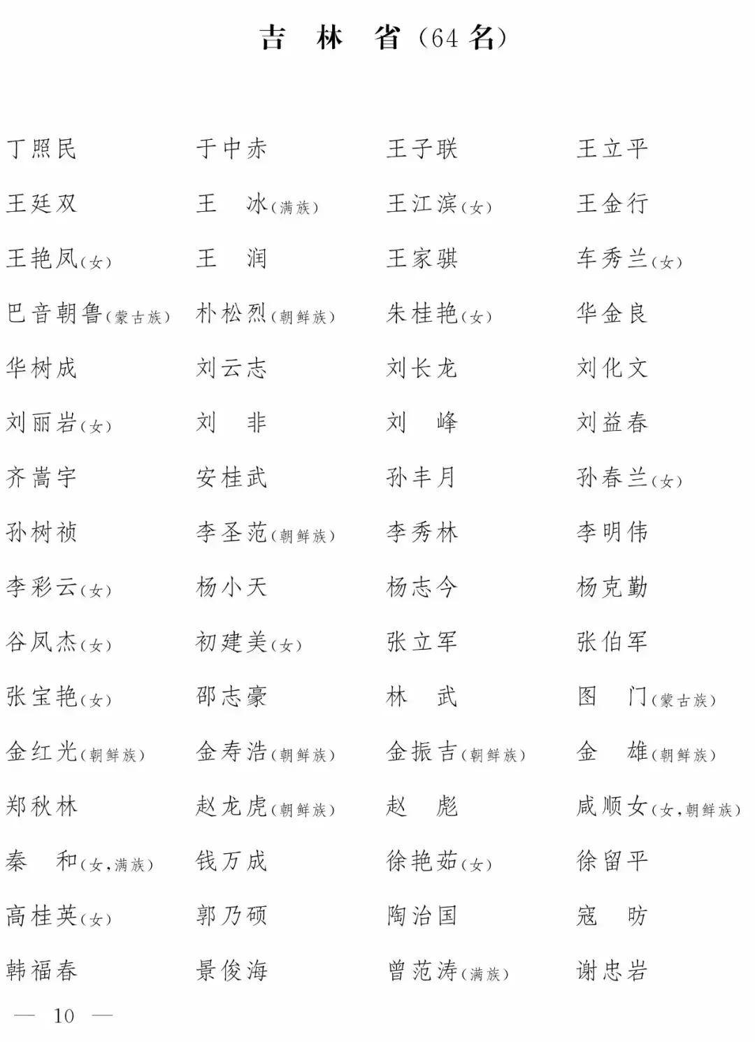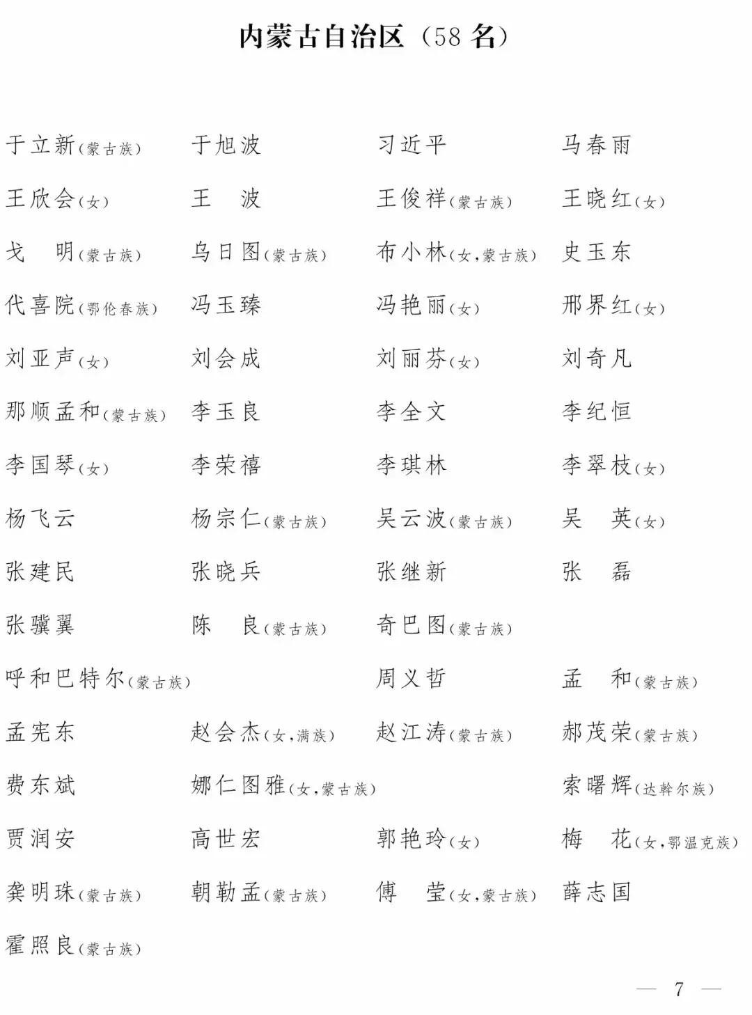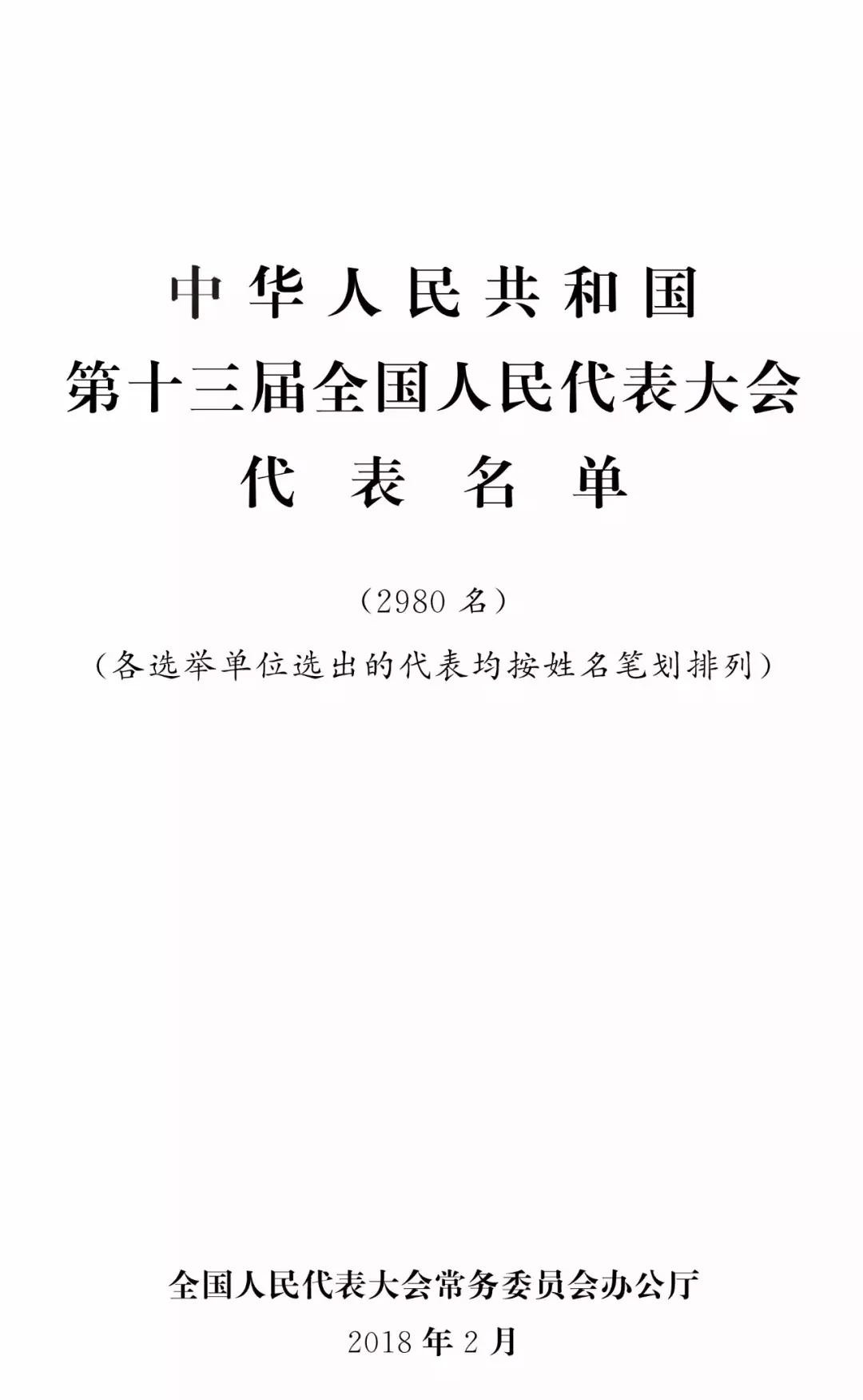 ◆ 附:第十三届全国人民代表大会代表名单(2980名)