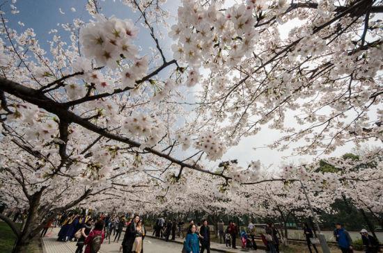 在上海若想看樱花,首先想到的就是去顾村公园,因为其拥有全市最大的一片樱花林。为了延长整个赏花期,顾村公园分别种植了早樱晚樱等20多种樱花树。而每年3月的樱花节,顾村公园都会被前来赏花的游客给挤爆,到那时能看到的估计也只有人了。