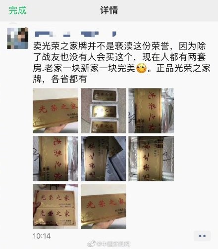 【商家网售光荣之家牌匾90元包邮 自称仿真度高 不犯法】近日,有微博网友爆料称,本应由政府部门为军人统一制作悬挂的“光荣之家”牌匾,有微商在朋友圈公开销售。记者了解到,微商出售的荣誉牌一块为90元(包邮)。商家自称,牌匾仿真度较高,已经有卖出去的先例,从未出过问题,也不犯法。(杨雨奇)