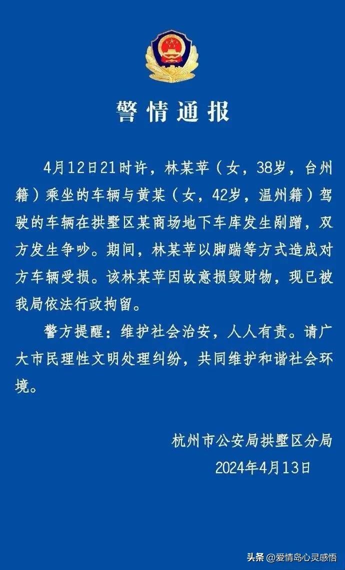 杭州市公安局拱墅区分局发布了警情通报,称事件发生在4月12日晚上9时左右。林某平保时捷司机因为故意损坏财物的罪名已经被依法行政拘留。这件事不再只是一个价值20万元的小事了。