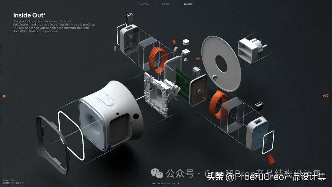 爆炸图的优势在于,它能够清晰、直观地展现复杂产品的内部设计特征,使设计更具说服力,并增强画面的严谨性和逻辑性。
