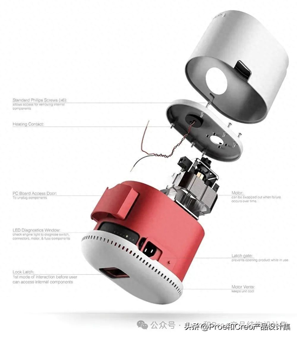 在设计过程中,设计者常用爆炸图来展示更多的产品信息。这种表现方式可以直观地帮助读者理解产品的内部结构和工作原理。