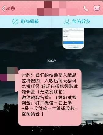 近日,有网友在“南宁辟谣”微博后台爆料称,一到暑假,在QQ群、微信群里经常看到有招募快递在线填单员的信息。