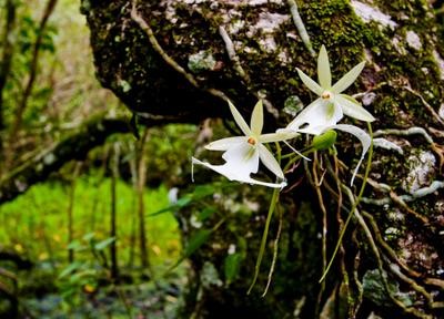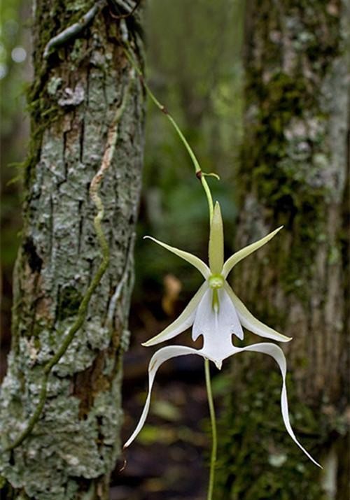 兰花大都给人清新优雅的感觉,鬼兰却是兰花中的异类。鬼兰,又名幽灵兰,花如其名,它生长在潮湿阴暗的沼泽之中,与鳄鱼为伴,开出的花朵苍白、诡异。昆虫传粉,种子靠风力传播。