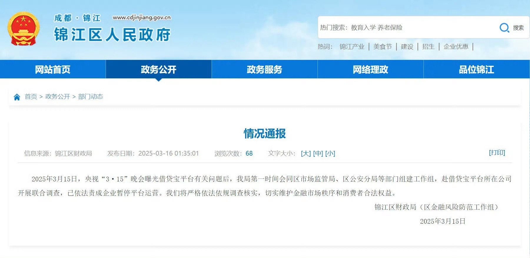 根据最新消息,成都市锦江区人民政府已经发布了相关通告,目前借贷宝平台已经被暂停运营,并且工作组已经赶赴这家公司展开调查。