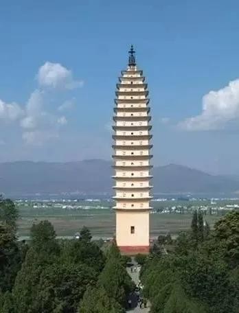 大理三塔是中国为数极少的三座古塔呈品字形矗立在一起的古塔。其中大塔,又名千寻塔,高69.13米,共有16层,是座方形密檐式的砖塔,为唐代典型的塔式之一。