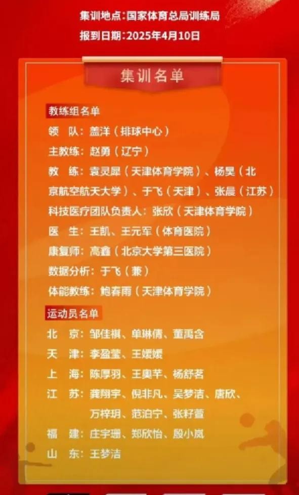 新一届中国女排的集训名单里,只有龚翔宇、李盈莹、王媛媛、王梦洁、吴梦洁、庄宇珊和倪非凡7名老将,其中的李盈莹还在康复中,恢复的结果还是个未知数,其余12人全是第一次进入国家队的新人。特别是董禹含、范泊宁、张籽萱、杨舒茗、王奥芊等小将来自青少队,她们对成年排球还需要一个适应过程。