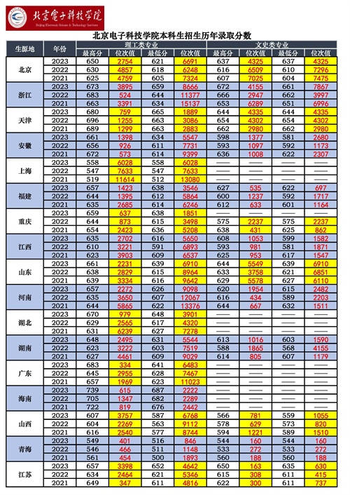 高考录取分数比肩985大学的北京电子科技学院近三年各省录取分数