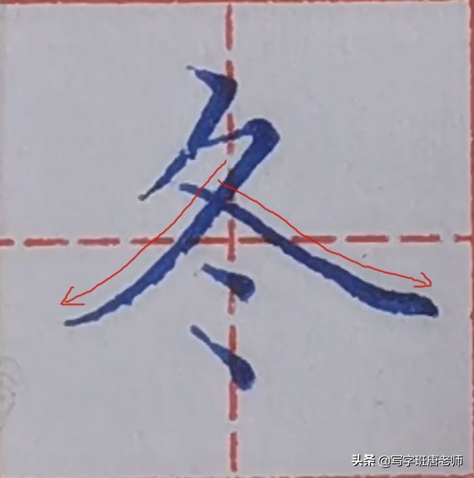 1、冬字的主笔是下面的撇和捺,这两个笔画要成为最宽的地方,要展开写