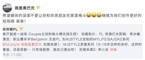 近日,有网友发现张雨绮前夫袁巴元微博仅关注了名为“沛翎PL”的人,有人留言求证是否为女友,女方则并未直接否认,只是纠正了网友的错别字,疑似恋情曝光。28日,袁巴元转发该女生晒出的格斗视频,并配文“希望媒体的误读不要让你和你男朋友在家里格斗”,对新恋情进行否认。