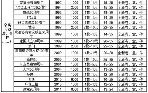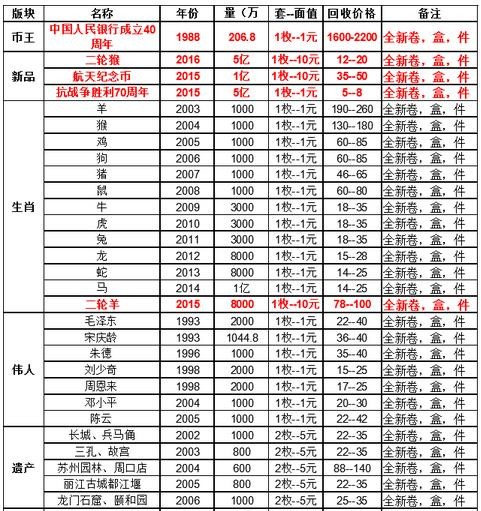 最新流通纪念币回收报价,最新纪念币回收价格参考表