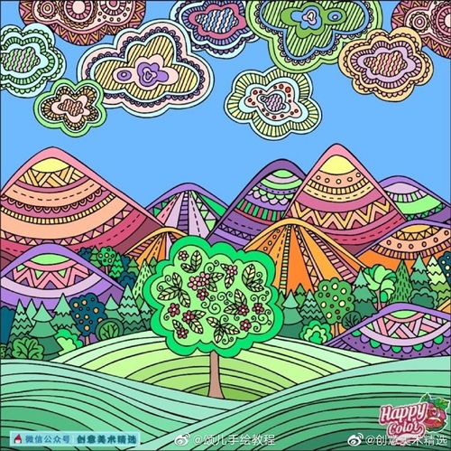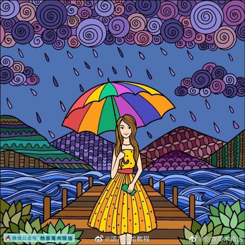 色彩亮丽,构图很有设计感的一组装饰画