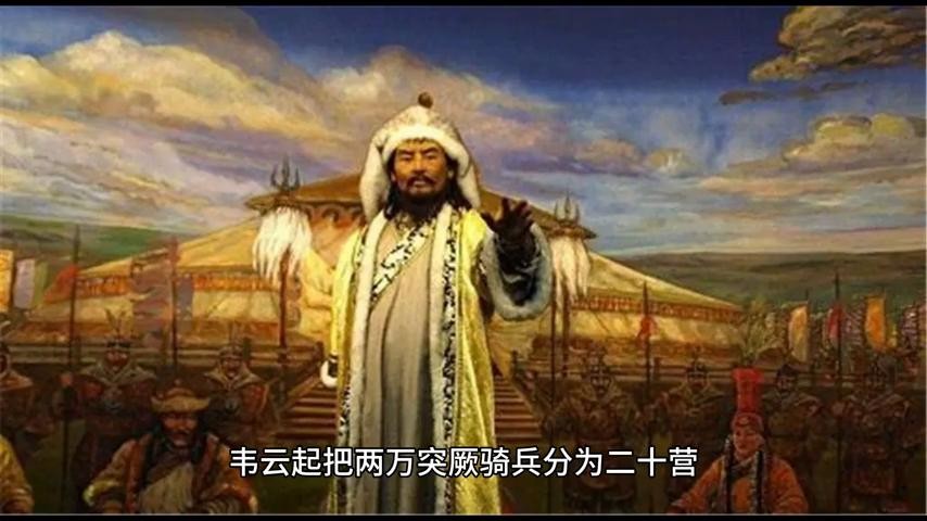 大业元年因契丹人侵扰营州,隋炀帝诏令通事谒者韦云起监领突厥兵去讨伐契丹。突厥启民可汗派二万骑兵听命于韦云起指挥讨伐契丹。韦云起把两万突厥骑兵分为二十营,分四道一同进发,每营相距一里不得交杂。闻鼓声而行,闻角声而止。韦云起命令没有公事派遣不得驰马。