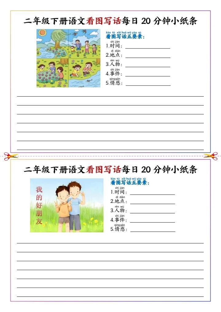 二年级下册语文看图写话,每日20分钟小纸条,共22页,可打印