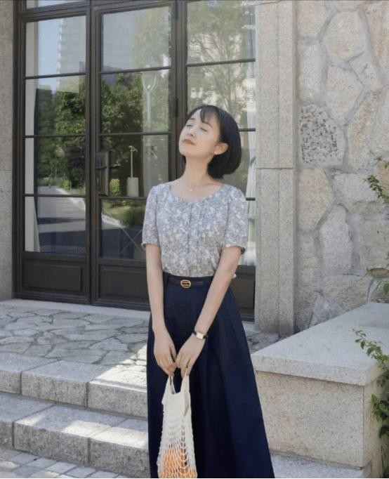 暗灰色的碎花上衣有一种年代感,胸前的几条褶皱很有设计感,削减了沉重的年代感添了几分时尚感。深紫色的半身长裙和上衣很好的映衬,有几分古典美人温婉大方的气质,若是留一个学生样的短发型,感觉时空交错和民国时期的学院少女重合,灵静乖巧。完全看不出真实年纪。值得一试哦!越到40岁越要懂得在穿搭上花功夫,“40女人一朵花”,40岁同样能穿出少女感,灵动机巧,大方婉约的气质,而且可以尝试不同的风格。赶快行动起来,你就是最美的女神。