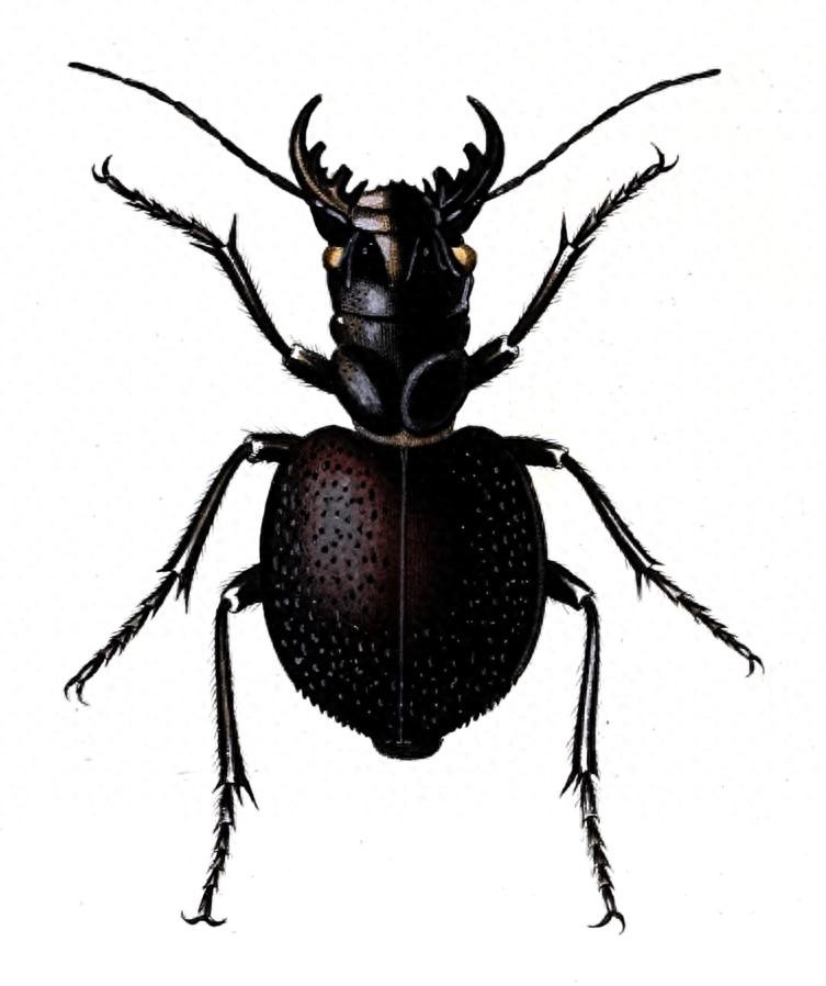 大王虎甲是一种大型虎甲,体长可达65mm,下颚巨大,体色棕黑色,鞘翅有颗粒感,布有细小绒毛,有亚金属光泽。分布于非洲南部。