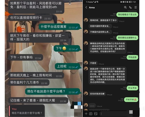 你们可能是在微博/wx群/社交app等偶然加到。杀猪盘找的目标下手人群,1.大龄单身2.受过情伤3.有一定的经济能力,外表孤傲内心却缺爱缺乏安全感的。披着爱情外衣、用甜言蜜语欺诈,在你们相互聊天过程中,由团队人员制定养猪杀猪计划,并且实时调整策略,你以为你是1v1,不好意思你是1vN,先情感精神操控,等时间长,你放下戒备心,猪都是先养,熟了就开宰!就像催眠一样。让平时异常理智冷静聪慧的人都失去理智甚至自我怀疑起来,跟着对方的剧本沦陷其中。很容易“不知庐山真面目,只缘身在此山中“!