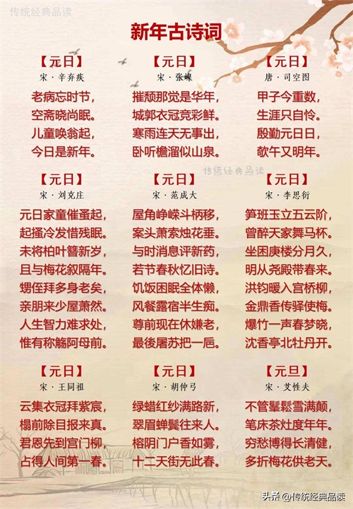 这些诗词涵盖了各种主题,包括对新年的期盼、对过去的回顾以及对未来的展望。每一首诗词都蕴含着深深的情感和独特的艺术魅力,希望大家在欣赏的过程中能感受到这份美好。