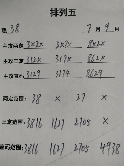 排列五最新预测规律走势图 7月9号 汇总 稳38头 精准36组
