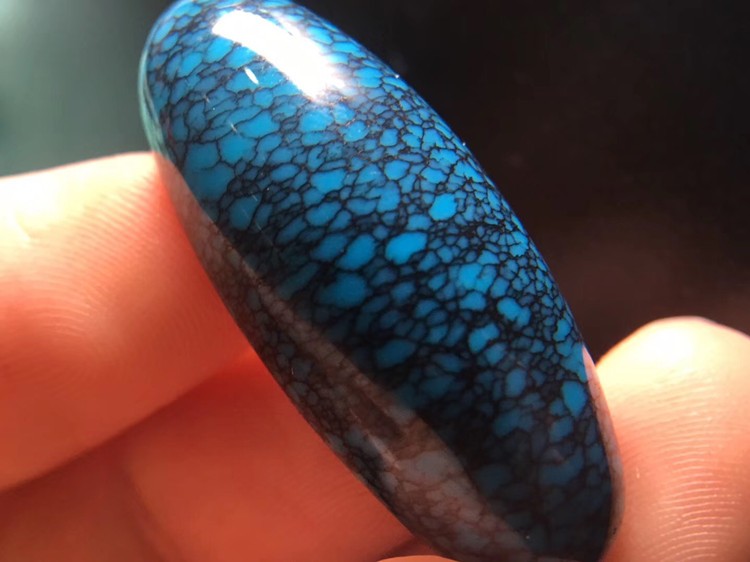 乌兰花绿松石中的“花”代表的是绿松石中的网花绿松石,并不是所有的网花都行,乌兰花绿松石的网花一定是要网格清晰,呈暗线,均匀蛛网状分布