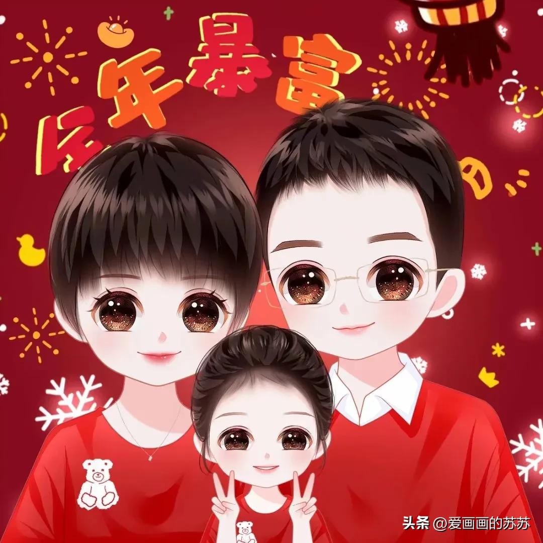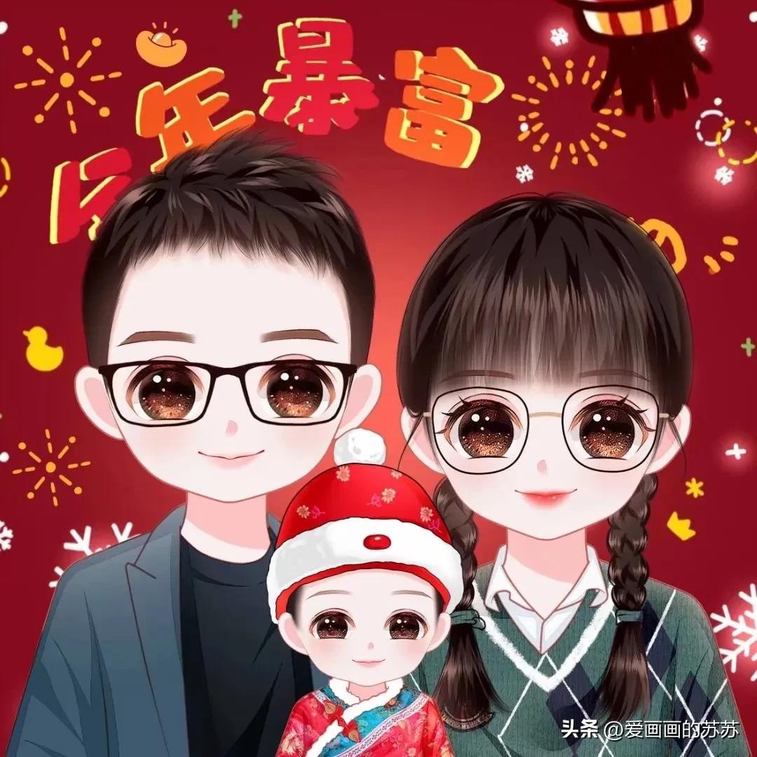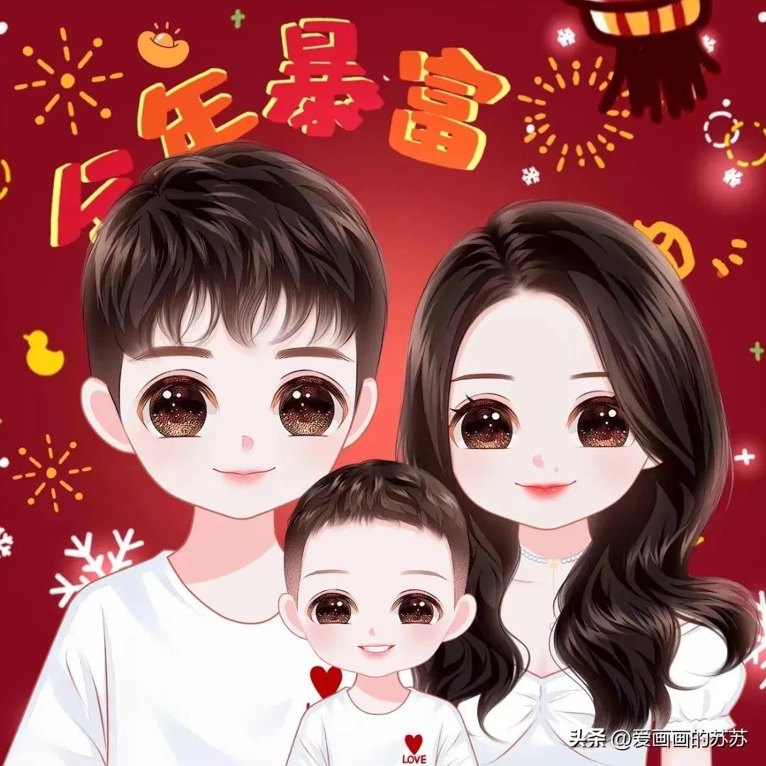 换个头像吧,一家3口的卡通全家福头像,满满的都是爱