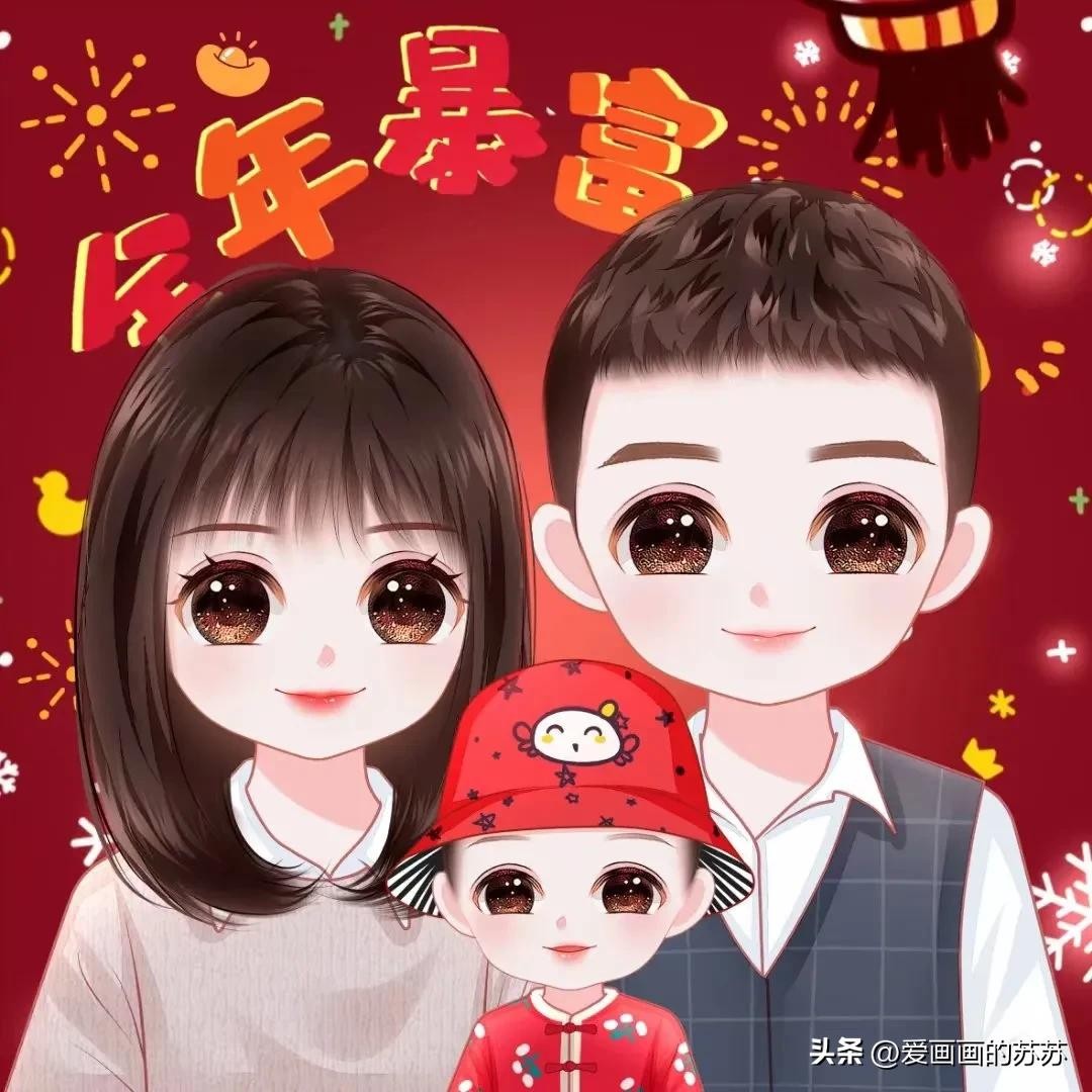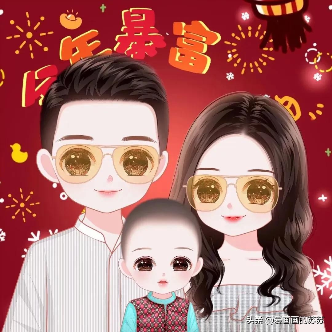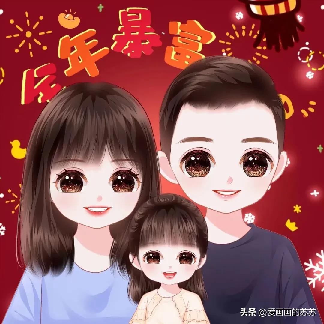 换个头像吧,一家3口的卡通全家福头像,满满的都是爱
