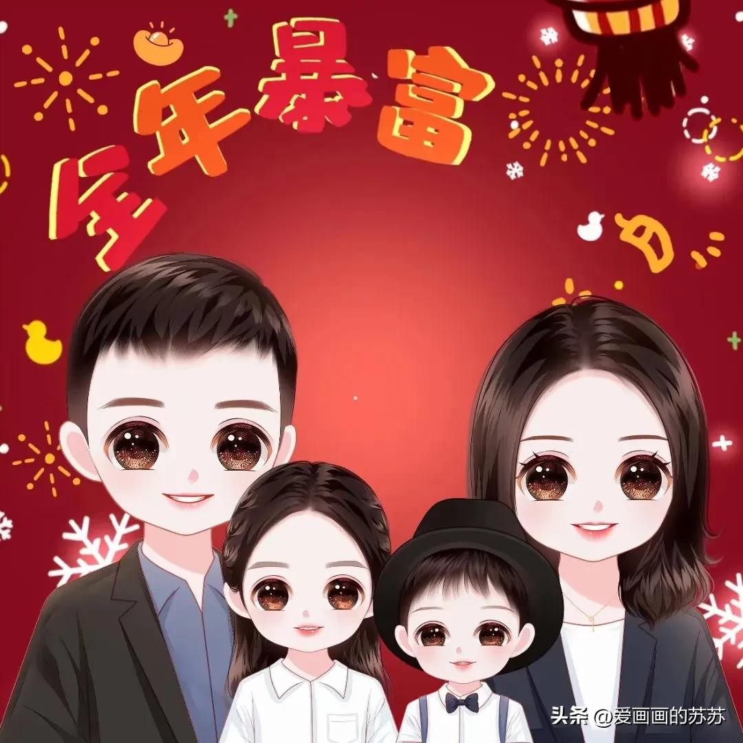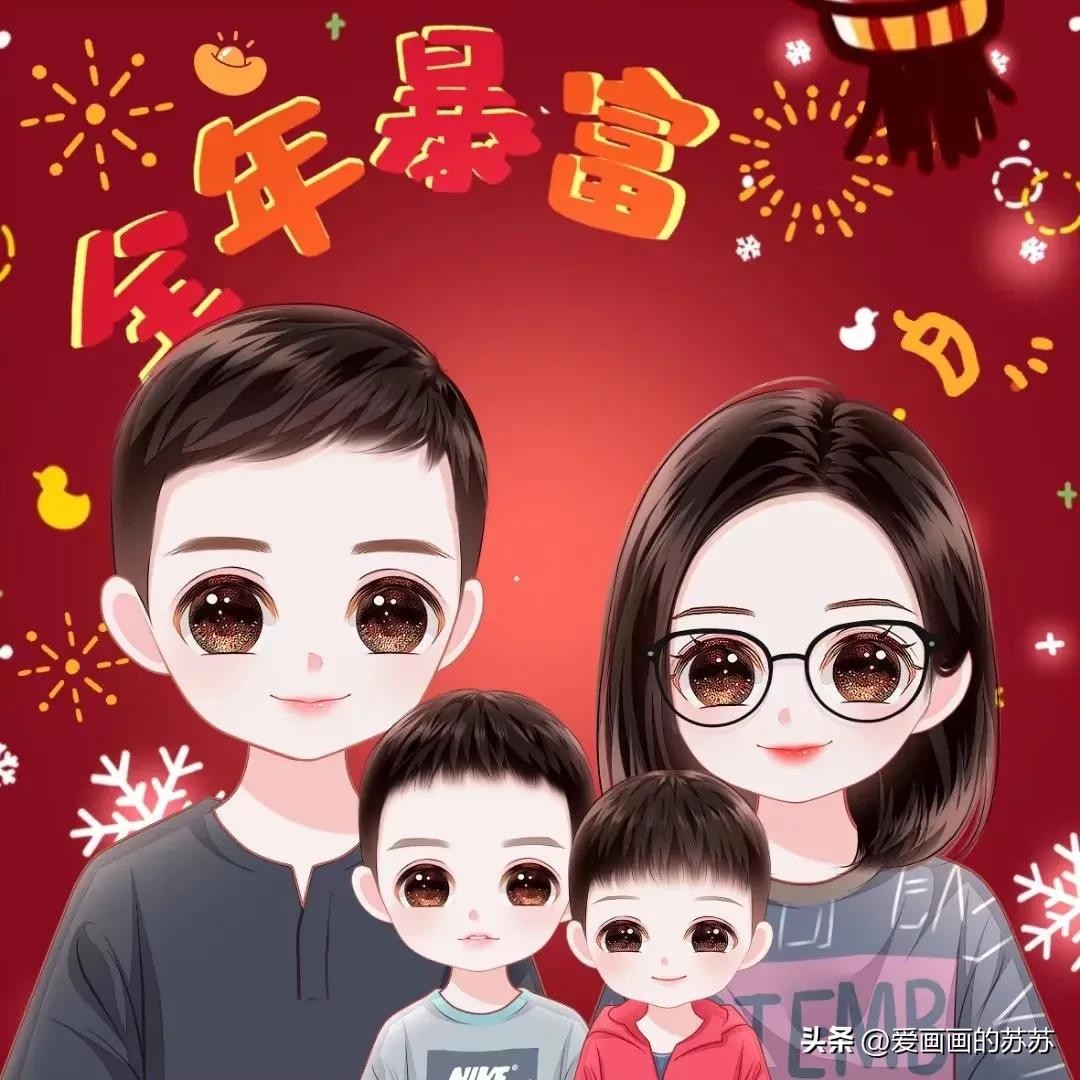 分享一组卡通全家福头像,一家人聚在一起,其乐融融,大大的脑门,圆圆哒眼睛,萌萌哒表情,满满的都是爱。